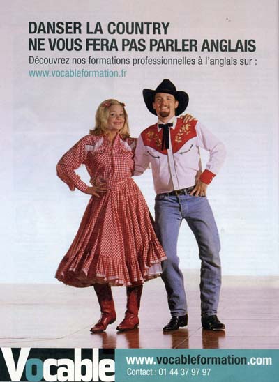 Mikel explains this French ad:"Vocable is a language-teaching company; American square dance is