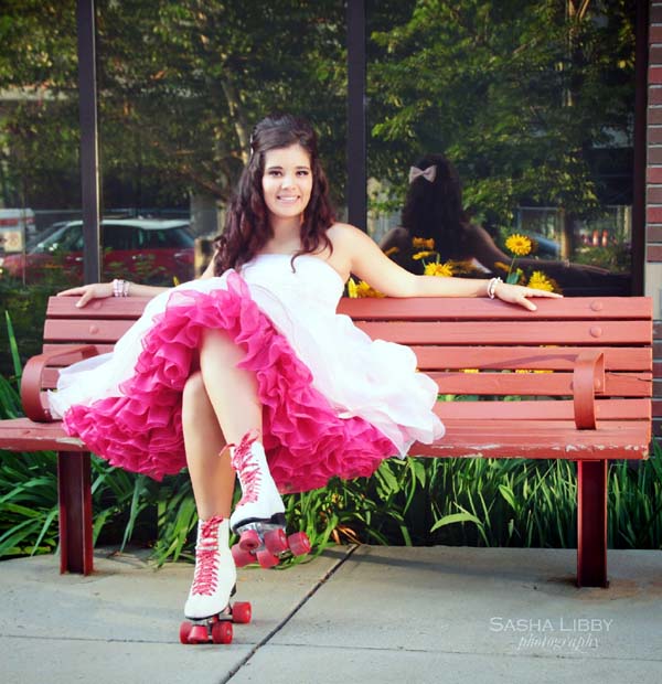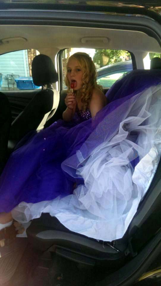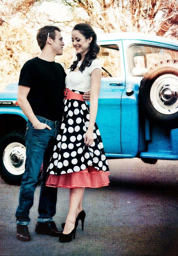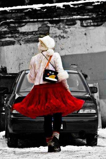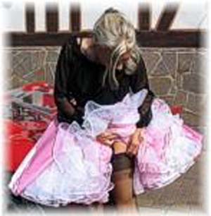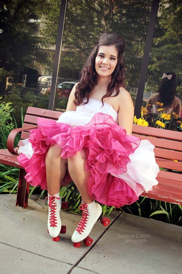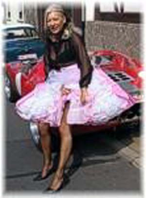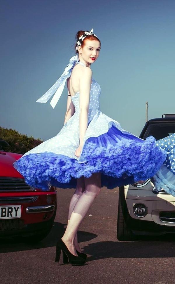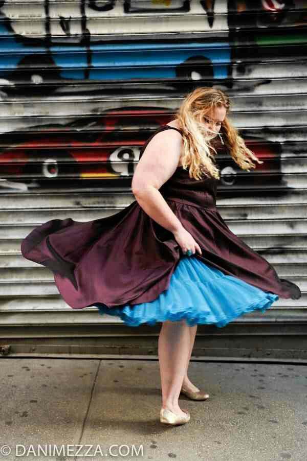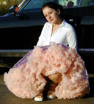 (Below three) Pictures with the theme of managing large skirts; all by 'Parachute Dress':