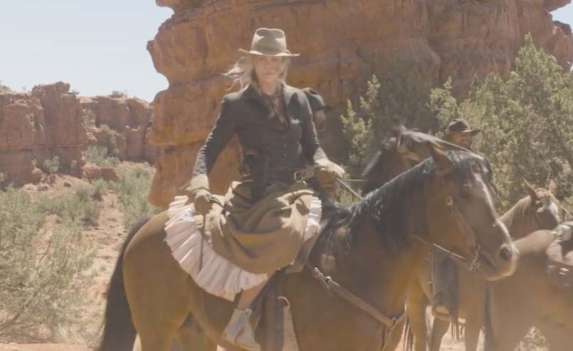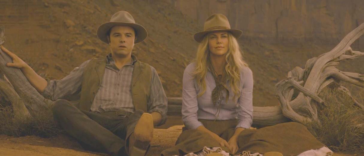 Sheryl T. : Ms. Theron shows her petticoat many times, my favourite being when she is riding a horse and the whole side of her skirt is being blown back. Ms. Seyfried also shows some petticoat at the hem of a floor-length dress as she walks. Sarah Silverman had a 'going-to-bed scene' where she had discarded her dress. There's also a barn dance with many glimpses of various petticoats; one of the dancers picks up her skirt cancan-style and kicks Seth McFarlane. All that was missing was cancan girls in the saloon. Review by Rhino |