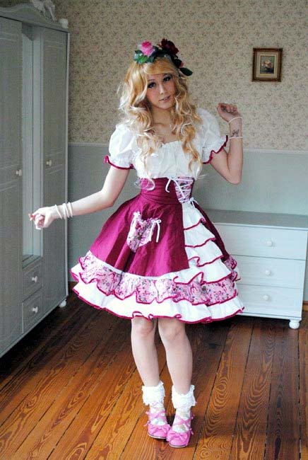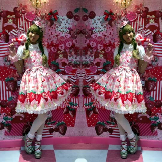 From Kristi: Ann: "Ichigo Mikou is a line of Lolita dresses. A Google search turned up a lot of good images and this website: lolitadressshop.com. I searched the name on the site and found about 20 or so images with that name on the photos. Interesting site to browse." |
