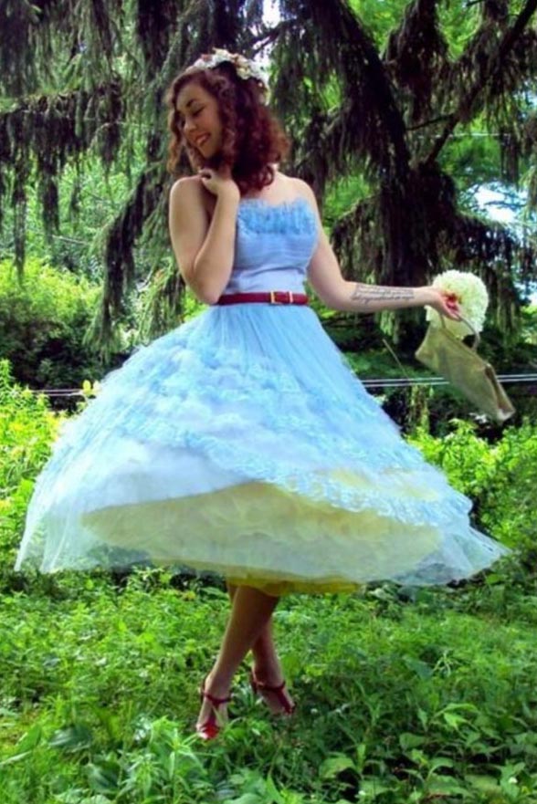 The shorter petti under the longer (L) makes for an interesting skirt silhouette, with much the same effect that many Korean wedding gowns display. Also nice to look at from below!